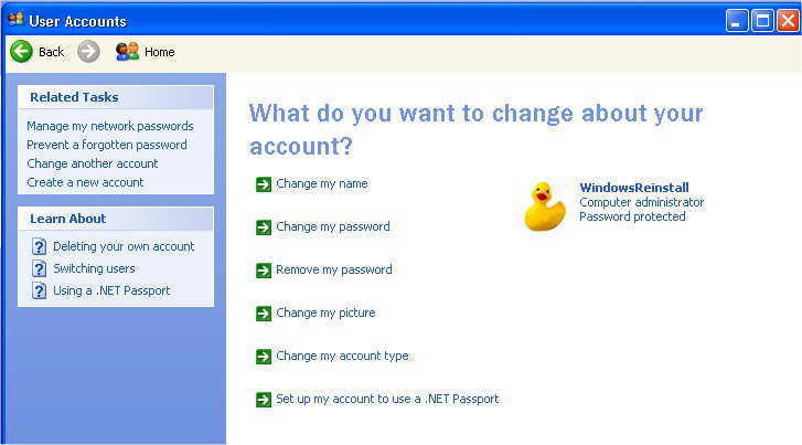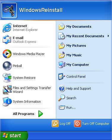 If you wish to Remove your User Password follow the next few steps 1) Click on Start 2) Click on Icon (Motorcycle in example below) beside WindowsReinstall 3) Click Back from the below Screen