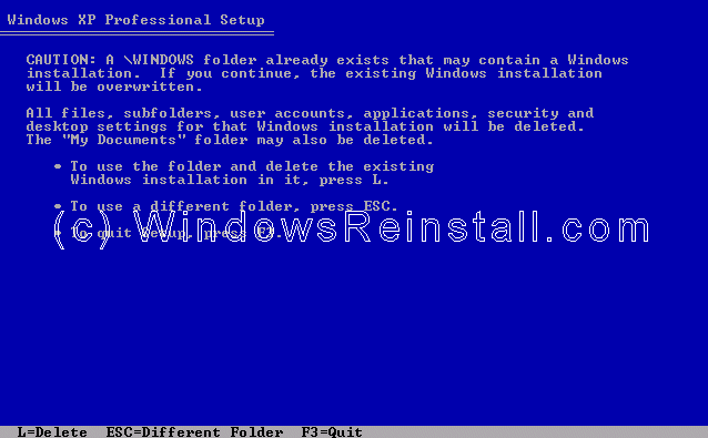 To begin insert your Windows XP Professional CD and reboot you computer. A message "Press any key to boot from CD....." will appear, press the space bar to continue.