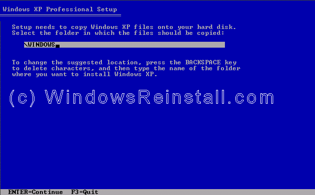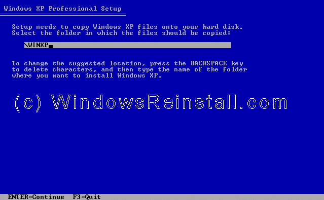 You can change this to whatever you want, in the example we used WINXP. Press enter once changes have been made to continue.