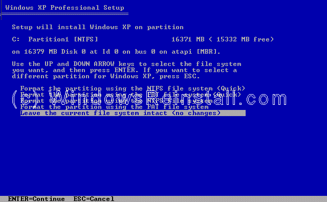Now you will be asked if you wish to format the drive, select "Leave the current file system intact (no changes)" and press "ENTER"