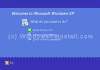 The "WELCOME" screen will appear first, select "INSTALL WINDOWS XP" by clicking on it with the mouse.